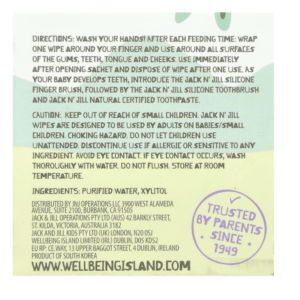 Completely natural and safe, they are made from cotton. Jack n’ Jill Baby Gum & Tooth Wipes have a gentle texture for effective cleaning and plaque removal. Neutral flavored, they have a pleasant taste thanks to xylitol. Jack n’ Jill Gum & Tooth Wipes are free from fluoride and sugar. Our wipes are sterilized and individually wrapped to ensure optimum hygiene.